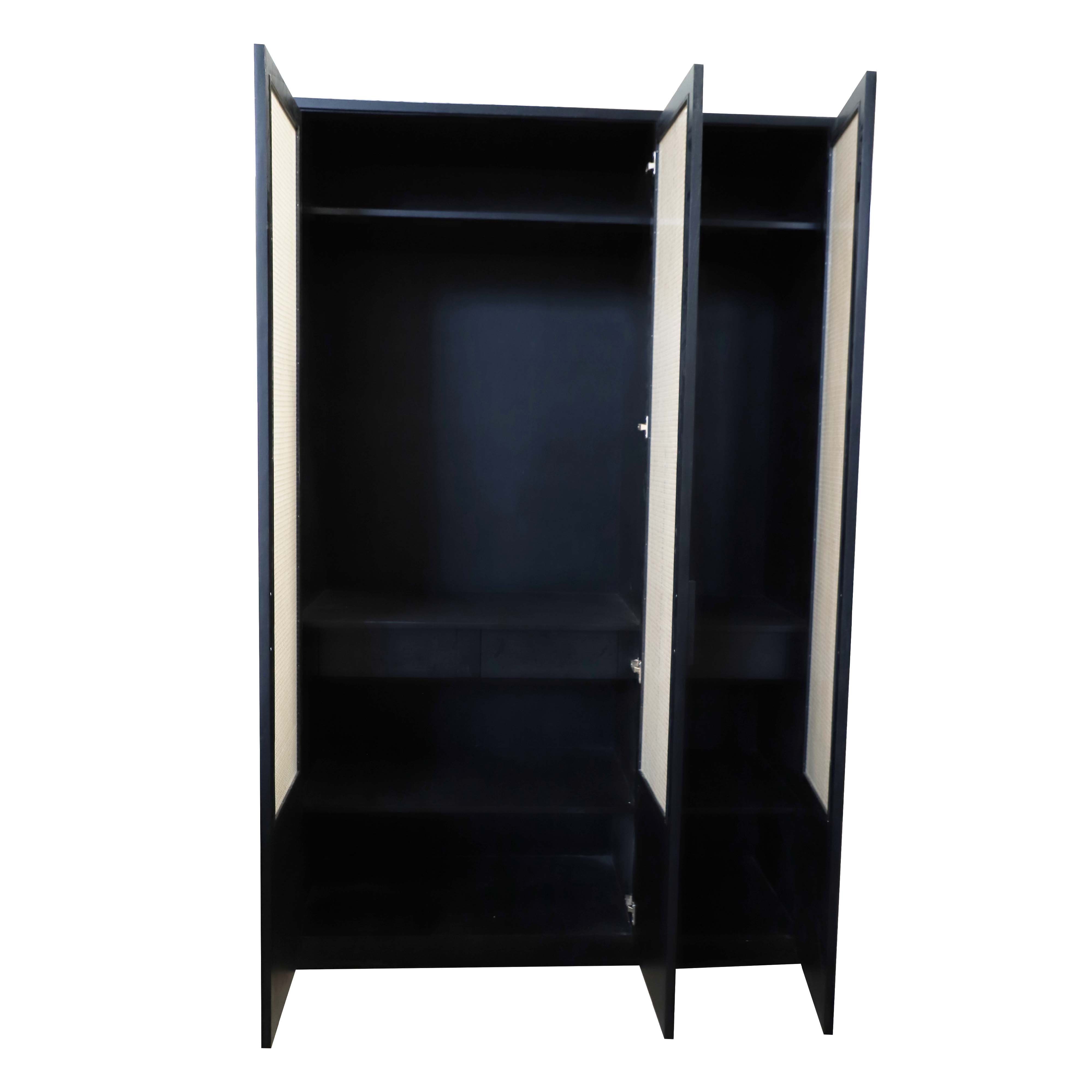 TEAK WOOD RATTAN CANING WITH GLASS SHUTTERS WARDROBE ALMIRAH STORAGE CABINET. FULL HEIGHT 8 FT