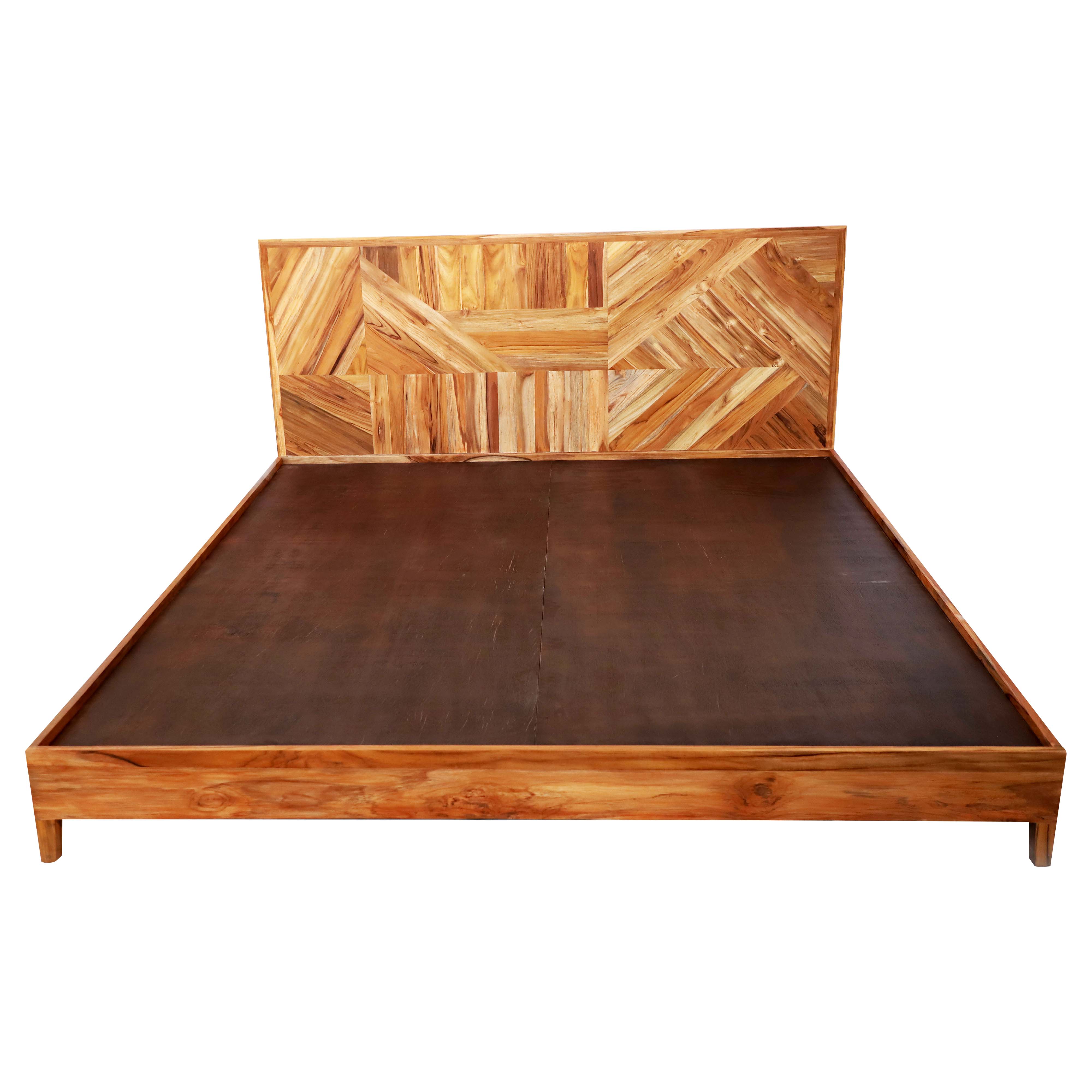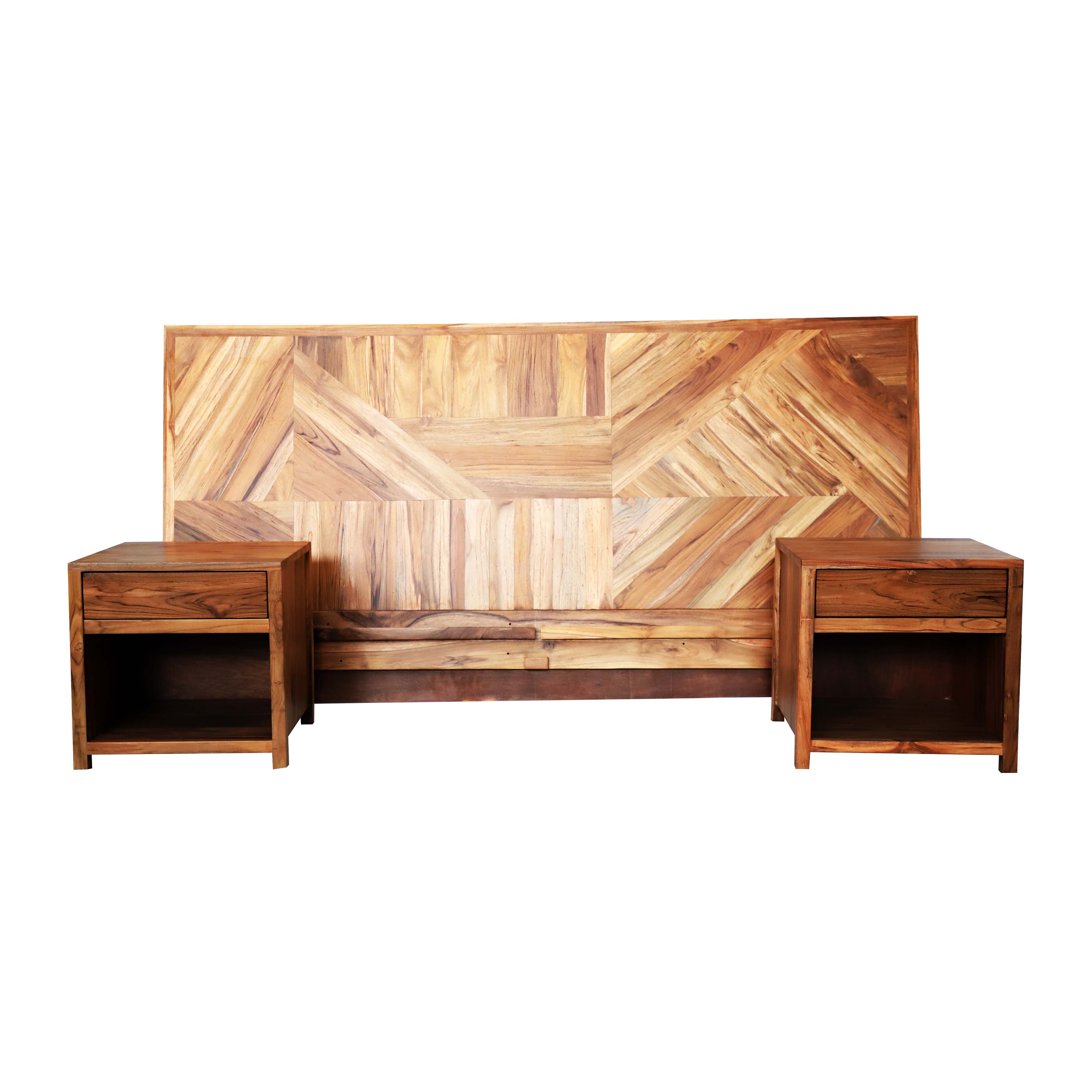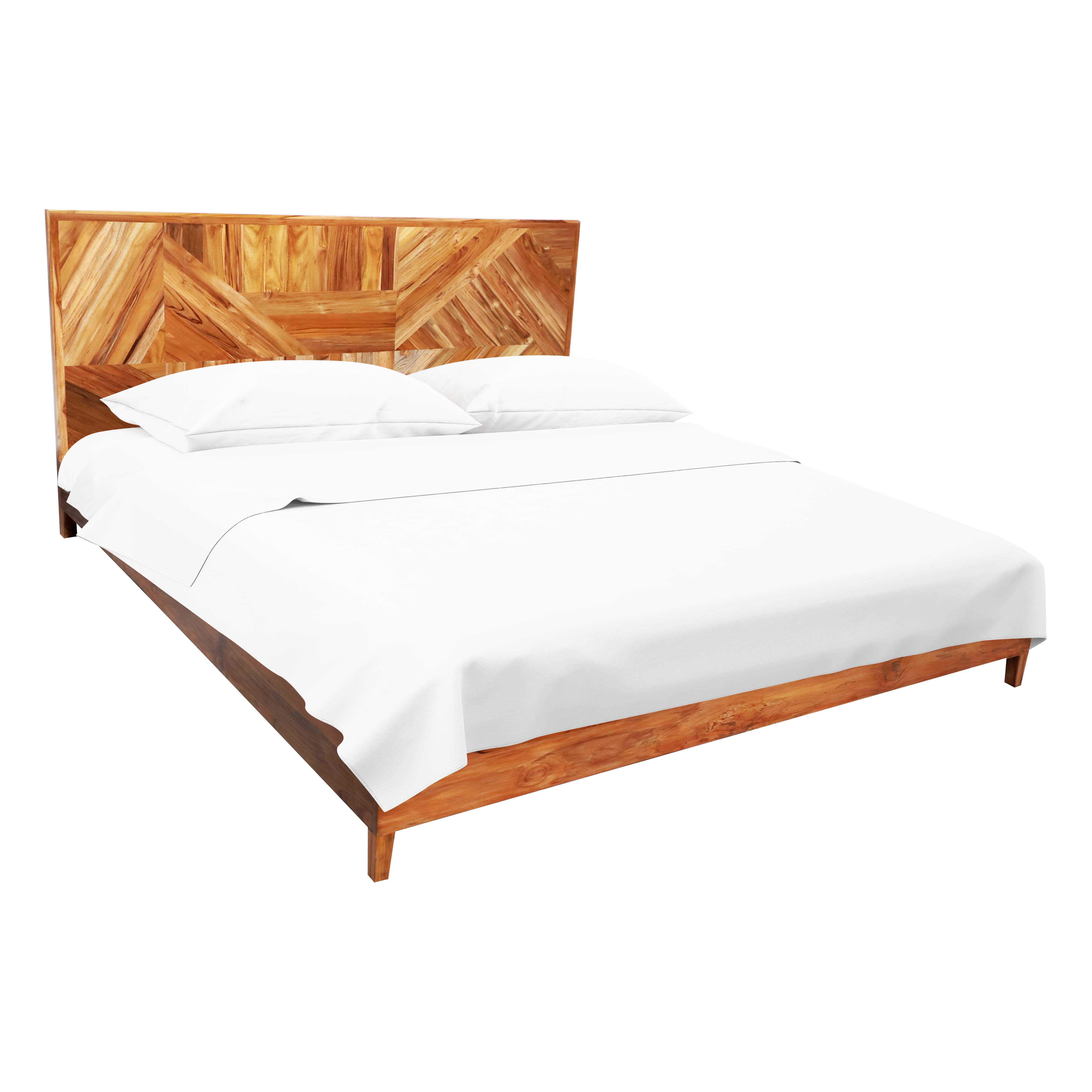 Wooden Bed Mid Walnut Color Minimalist Queen Size (6X6 ft) bed Teak Finish with Zig -Zag Panal